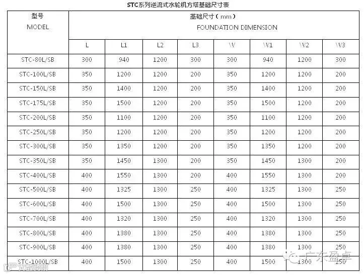 STC系列低噪音逆流式水轮机方塔基础尺寸表