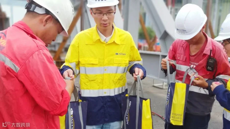 在关怀的话语中,领导将一份份代表关怀和鼓励的防暑降温物品,发放到现场每一位员工手中,为员工送上清凉。