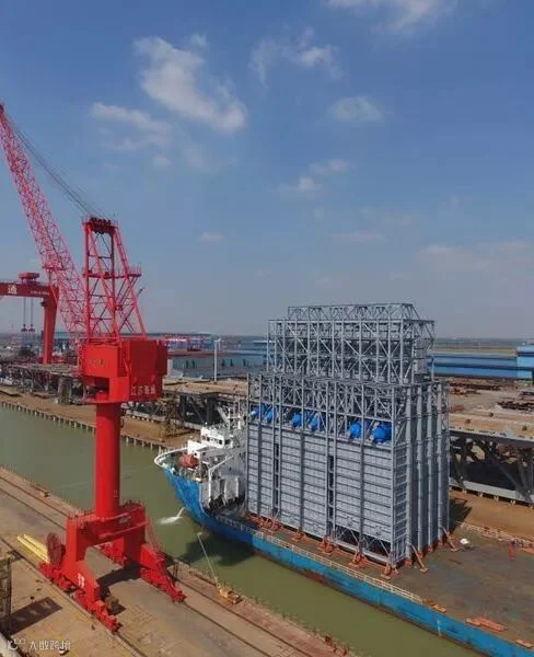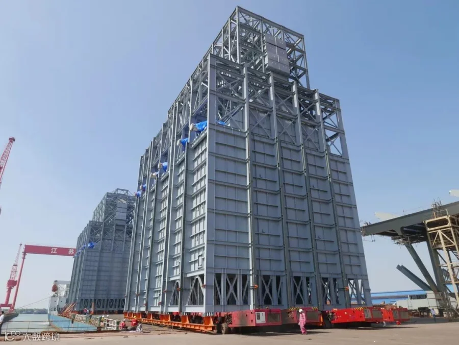 由我司参与的浙江石化一期一标段设备的运输正在火热进行,包括从吊装码头吊卸装车以及船上滚卸运输至堆场(滚装置区安装位置)。