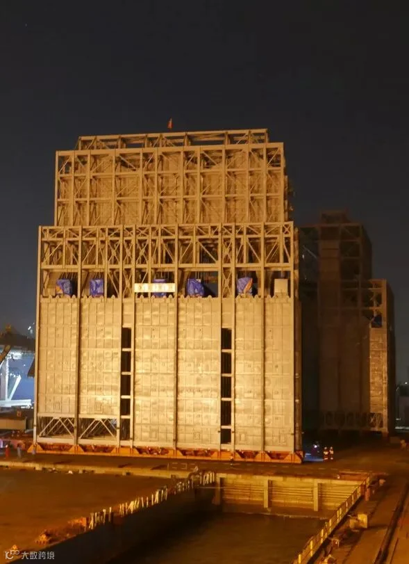 浙石化18台设备运输项目中的总重2115吨抽余液塔及900吨抽出液塔分别于10月3日,10月4日凌晨顺利完成滚装运输。