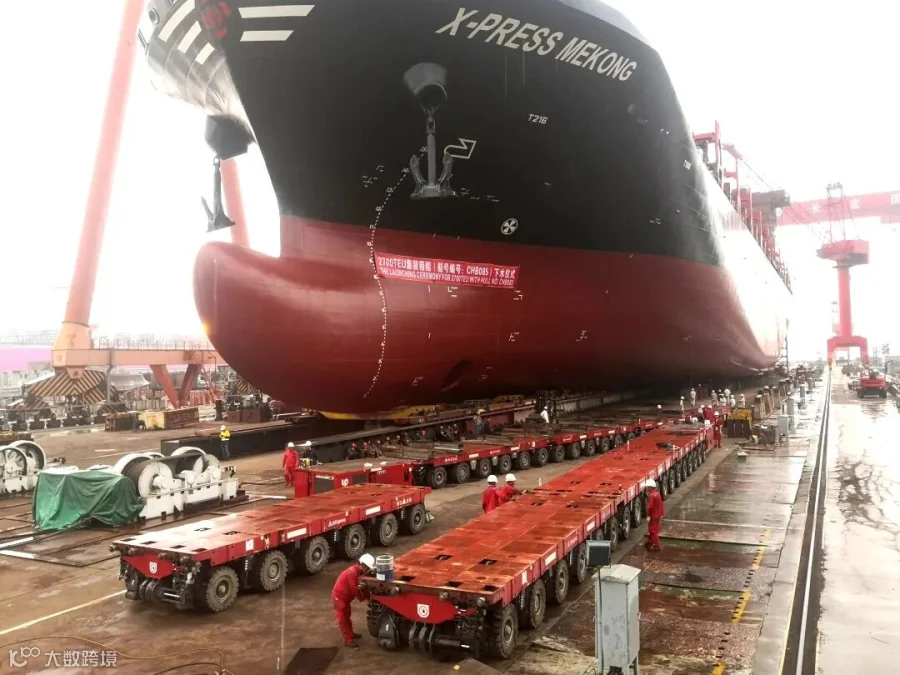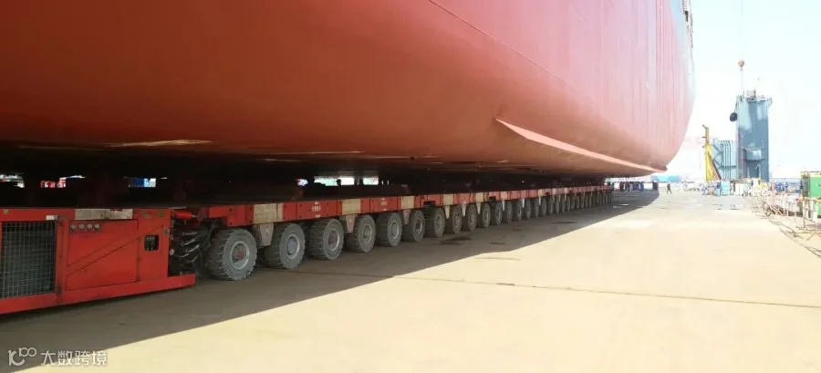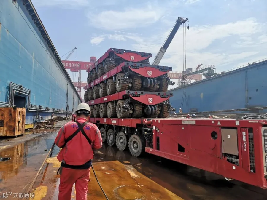 是国内首例SPMT运输万吨级物体、平地造船滚装下水创新工艺实践。
