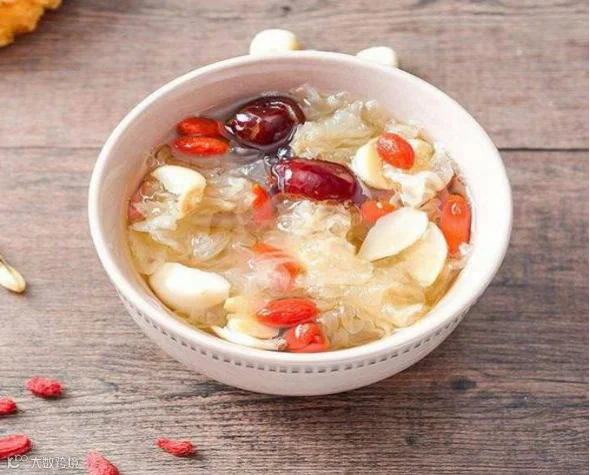 (2)将所有材料放入煲中加入适量的清水,大火沸腾后转小火煲40分钟,再加冰糖调味即可。