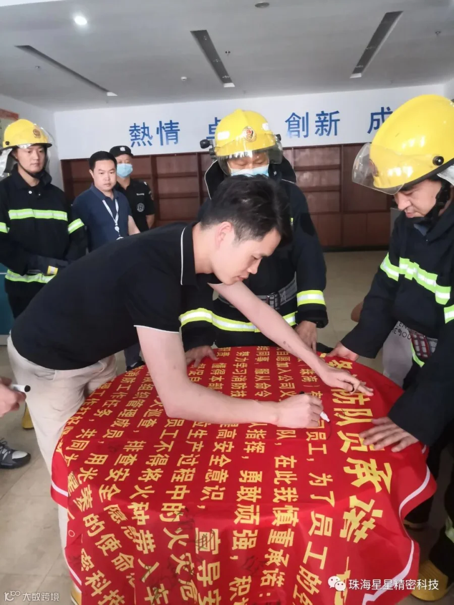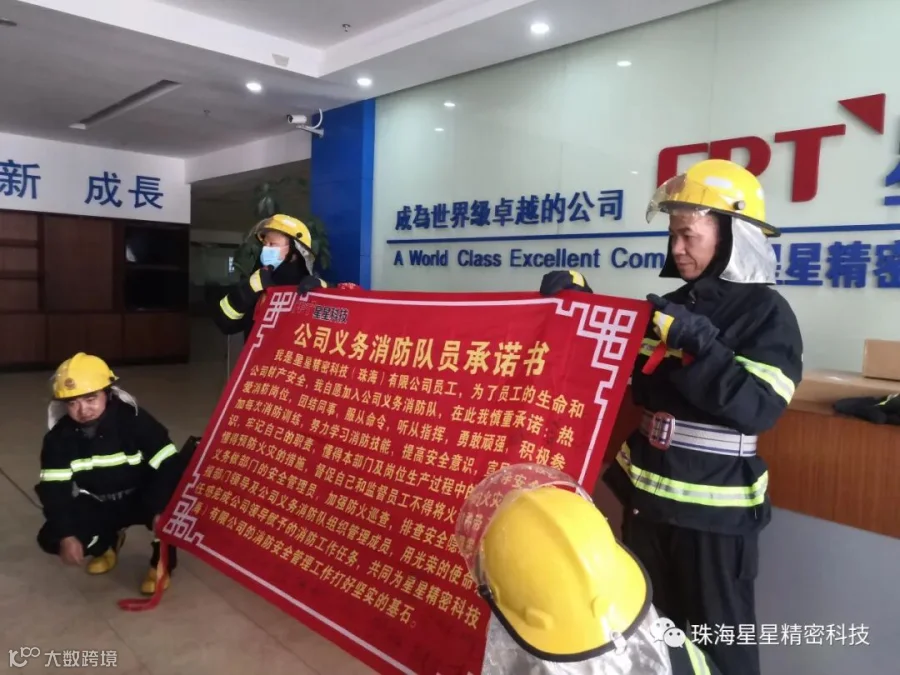 我是星星精密科技(珠海)有限公司员工,为了员工的生命和公司财产安全,我自愿加入公司义务消防队,在此我慎重承诺:热爱消防岗位,团结同事,服从命令,听从指挥,勇敢顽强,积极参加每次消防训练,努力学习消防技能,提高安全意识,宣导安全知识,牢记自己的职责,懂得本部门及岗位生产过程中的火灾危害性,懂得预防火灾的措施,督促自己和监督员工不得将火种带入车间,义务做部门的安全管理员,加强防火巡查,排查安全隐患,及时上报部门领导及公司义务消防队组织管理成员,用光荣的使命感和责任感完成公司领导赋予的消防工作任务,共同为星星精密科技(珠海)有限公司的消防安全管理工作打好坚实的基石。