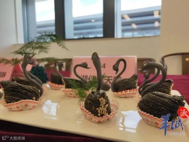 百香果松鼠鱼、鸳鸯虾球、 面包酿虾仁、口蘑菇炒花、桑拿河上鲜、香茅鱼籽牛......色香味俱全的中式菜肴让人垂涎欲滴。而转头一看,身后的长桌上,面点被做成了湖畔黑天鹅、树上核桃、如意茶壶、花生、酸奶小麻球......形态各异的中式甜点让人直呼惊奇,美轮美奂的颜值让人“不忍下嘴”。