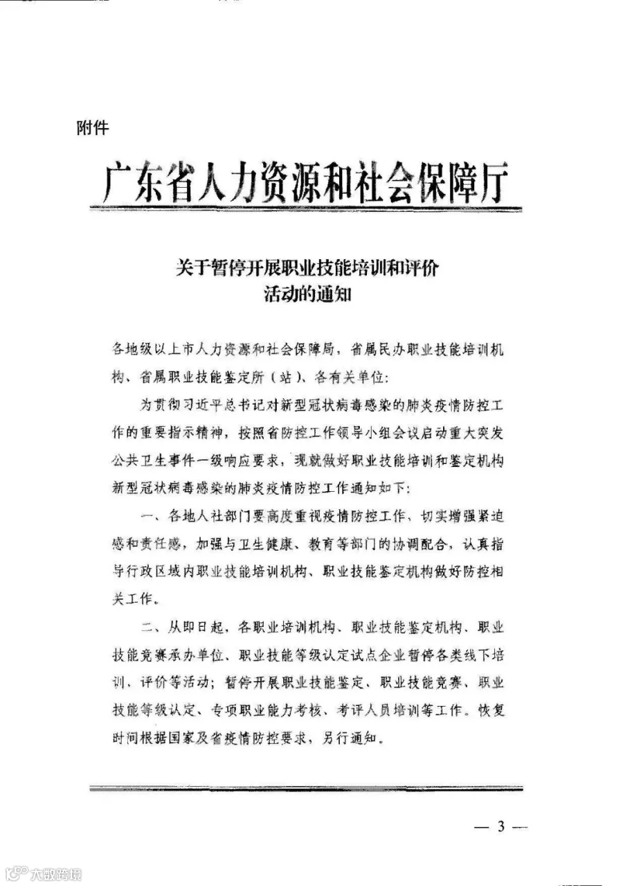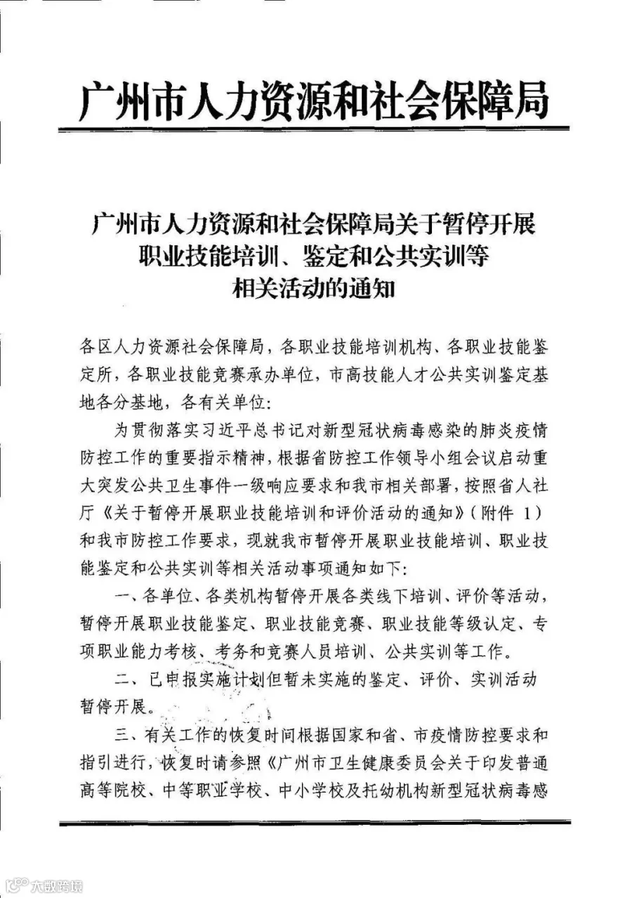 附件:关于暂停开展职业技能培训、鉴定和公共实训等相关活动的通知