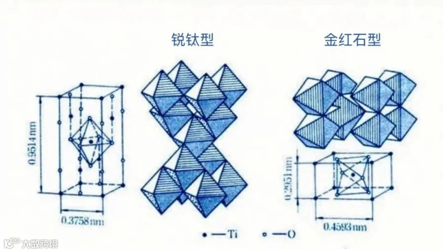 两者均有**锐钛型(Anatase)和金红石型(Rutile)**两种结晶形态,但普通氧化钛主要以金红石晶体为主,主要用于颜料、涂料等领域。而纳米二氧化钛既可以获得单独金红石或者锐钛型晶体结构,也可以获得二者混合的晶体结构,其中75%锐钛型的纳米二氧化钛,具有更优越的光催化性能。