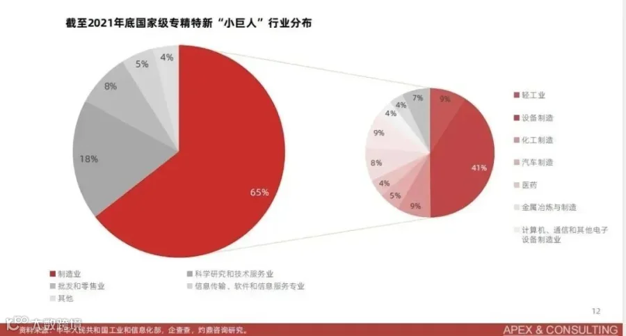 《“专精特新政策”研究报告》指出,截至第三批“专精特新”“小巨人”企业名单公布, 近3200家企业专注于制造业领域。在细分行业中,设备制造俨然成为企业创新发展的主阵地,在制造类企业中占比约41%。