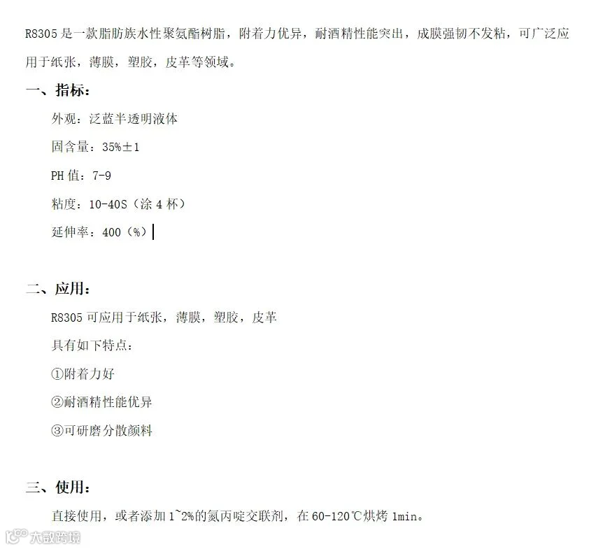 环保性:水性聚氨酯树脂基于水为溶剂,相比传统的溶剂型材料,它具有更低的VOC(挥发性有机化合物)排放,更加环保。