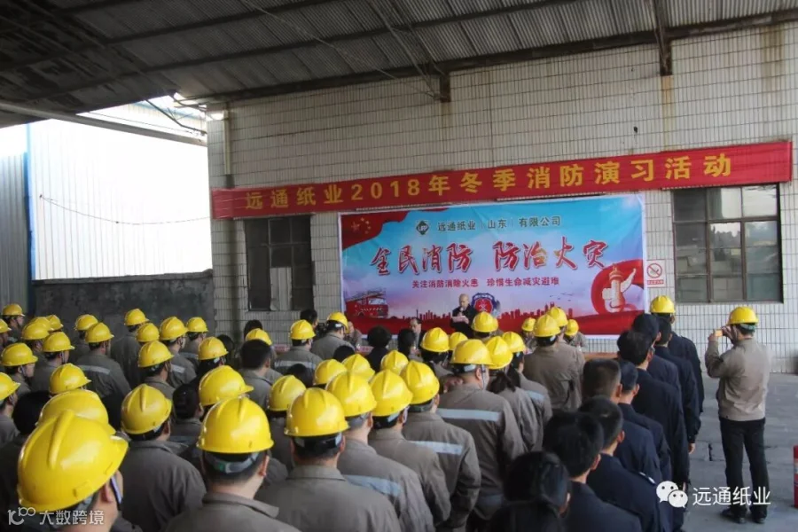 时至冬日,正值风干物燥、静电作祟、火灾多发之际,远通纸业原料场、成品库、车间干燥部等重点防火部位消防安全管理尤为重要。因此,增强员工冬季消防意识,提高紧急情况下的应变能力、处置能力及自我防护能力让冬季消防演习势在必行。2018年11月9日,远通纸业结合公司实际情况,特制定火灾险情扑救演习和安全疏散演习,并组织员工演练学习,取得圆满成功。