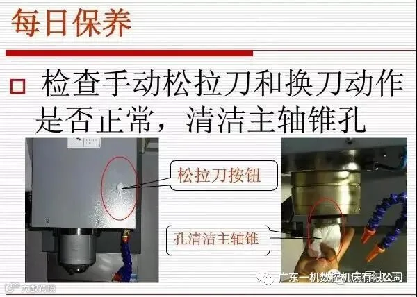 2、检查刀具拉栓是否松动,刀把是否清洁。