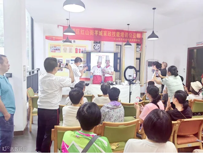 为助力技能型社会建设,帮助社区居民掌握实用烹饪技能,近日,在黄埔区人社局指导下,达康膳食创新工作室联合红山街道成功举办一场“秘制豉汁酱蒸排骨公益培训”活动。本次活动以“线上报名+线下实操+视频号直播”三位一体模式开展,吸引近 40 名居民现场参与,实现了“技能传授”与“社区温情”的双向赋能。
