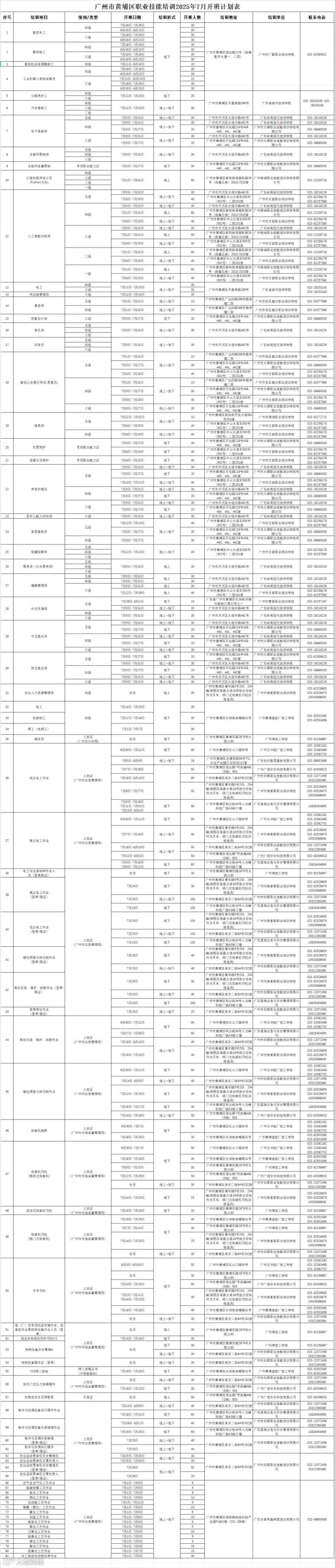 市黄埔区2025年7月职业技能培训开班计划如下,如需了解课程请拨打咨询电话。