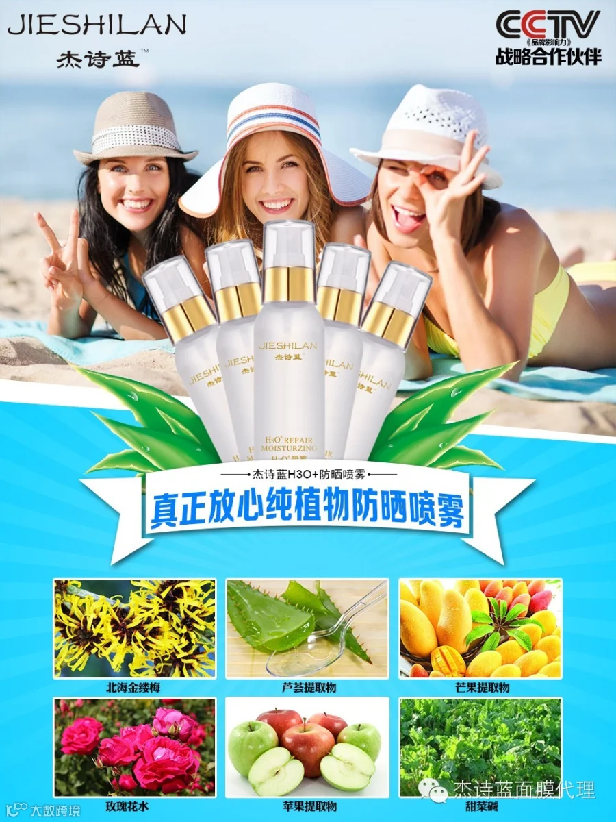 杰诗蓝H3O+防晒喷雾,高效持久防晒,补水又美白。