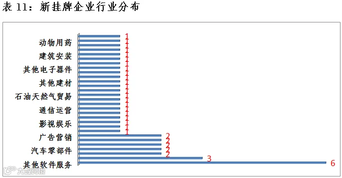 4月14日,共有41家新挂牌公司,均为协议转让公司。挂牌公司行业分布比较分散,其中其他软件服务行业占比较大。