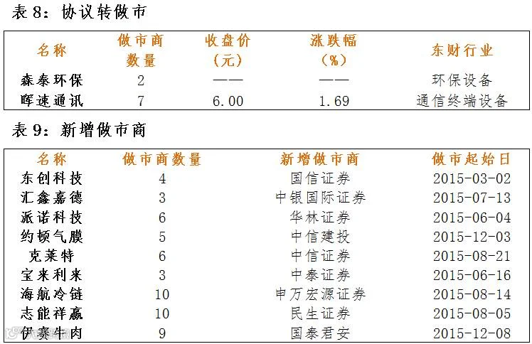 2家公司协议转做市 9家公司新增做市商