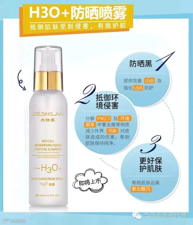 杰诗蓝H3O+防晒喷雾,防晒黑;抵御环境侵害,更好保护肌肤。