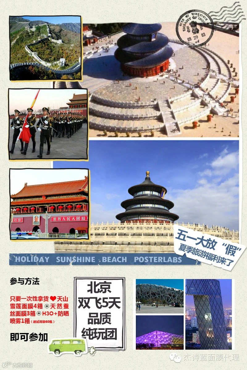 10、北京:4箱天山雪莲面膜 + 2箱天然蚕丝面膜 + 1箱H3O+防晒喷雾(送60瓶试用装)