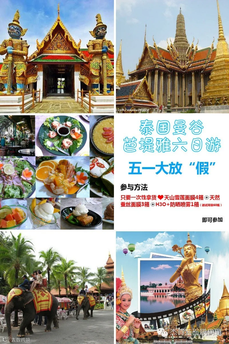 5、泰国六日游:4箱天山雪莲面膜 + 3箱天然蚕丝面膜 + 1箱H3O+防晒喷雾(送60瓶试用装)
