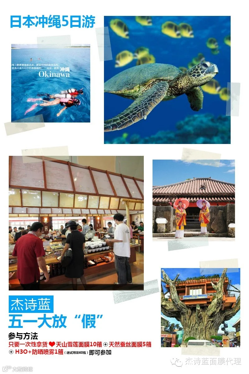 2.日本 六日游:10箱天山雪莲面膜 + 5箱天然蚕丝面膜 + 1箱H3O+防晒喷雾(送试用装60瓶)