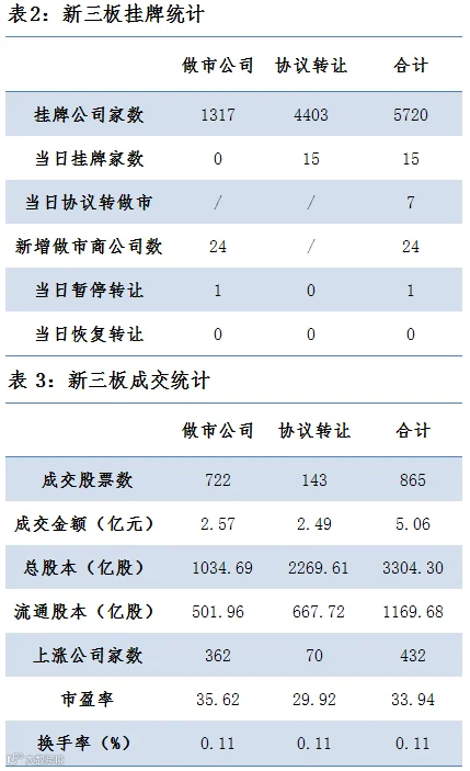 做市企业中有722只个股参与交易,成交额2.57亿元。其中362只个股上涨;4家做市企业成交额破千万:明利股份2306万、联讯证券1953万、卫东环保1910万、枫盛阳1529万。