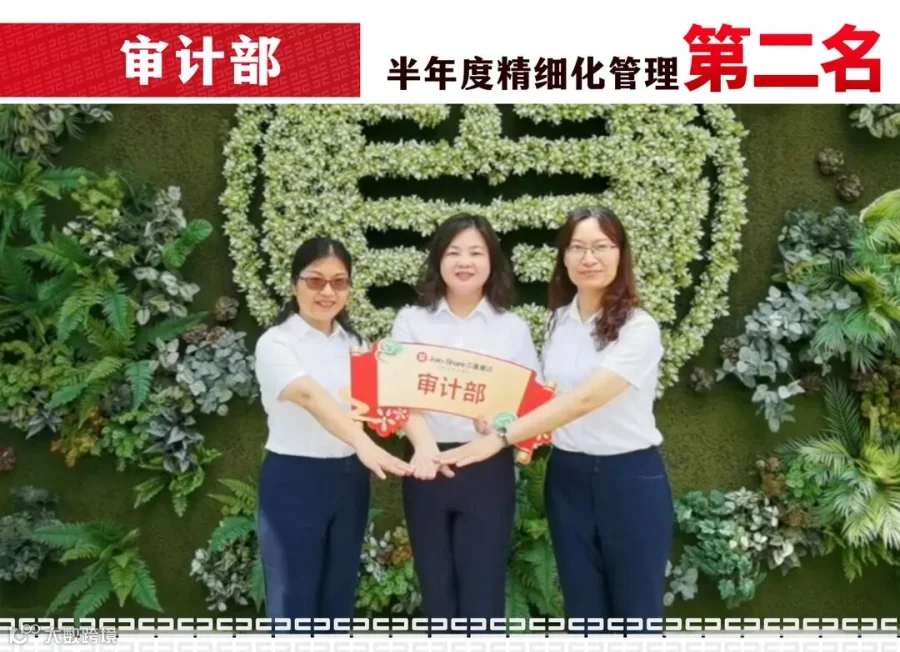 审计部以99.7分的考核成绩获半年度精细化管理第二名。上半年,审计部积极践行集团公司的精细化管理要求,营造积极向上的团队氛围:在业务管理上,强化工作计划性,建立项目工作明细清单与每周任务分解清单,并以“三个导向”的思路落实审计工作;在职场管理上,全员遵守考勤、服装穿着等行为规范,保持桌面整洁,创造美观温馨的职场环境。审计部将继续以“自律”作为行事准则,做到凡事心有规矩、行有尺衡,以保证工作的进度,并达成目标。