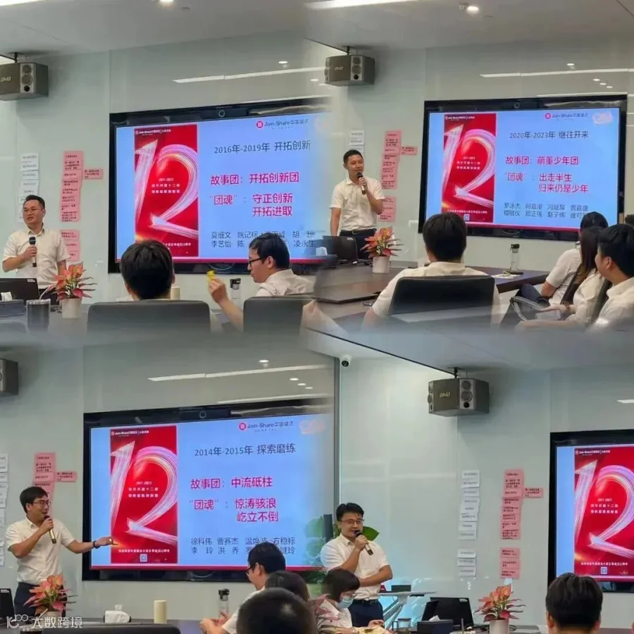 活动特别设置了游戏环节。小贷人按入职时间分成了“艰苦创业”、“探索磨炼”、“开拓创新”和“继往开来”四个团队,每个团队代表小贷公司发展的不同阶段。团队需要在有限的时间内通过串联小贷公司各个发展历程的小故事连接起时光隧道,希望大家可以沿着回忆的光圈寻找最初的赤诚之心。随后,四位团队代表结合自身与小贷公司共成长的经历分享了心得体会。现场时而引发阵阵笑声,时而陷入感慨与沉思。通过回顾小贷公司过去12年发展的挑战和成就,小贷人纷纷表示将坚定信念,不断向前。