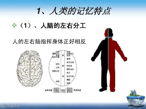 人的大脑分左右两个半球,左半球是主管抽象思维的,而右半球是主管形象思维的。我们将左半球称之为优势半球,而右半球则往往是被人们闲置着,用的时间很少。当我们用图像进行记忆时,正好将经常闲置的有半球调动了起来,所以记忆效果就比平常要好一些。