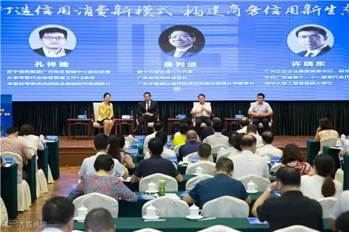 2018年9月3日上午,由省商务厅、省委宣传部,省发展改革委等21个部门联合主办的2018年广东省“诚信兴商宣传月”活动在广州举行。今年活动主题为“弘扬诚信理念,优化营商环境”。商务部市场秩序司副司长耿洪洲,21个主办单位负责人、各地级以上市商务主管部门负责人、省有关行业协会负责人、企业家代表、新闻媒体代表等150余人参加了此次活动。第十三届全国人大代表、广东省信用协会会长、中盈盛达董事长吴列进受邀参加了活动,并担任对话嘉宾,与广州立白集团副总裁许晓东、苏宁云商集团广州地区管理中心副总经理孔祥建等企业嘉宾围绕“打造信用消费新模式,构建商务信用新生态”主题开展了精彩对话。