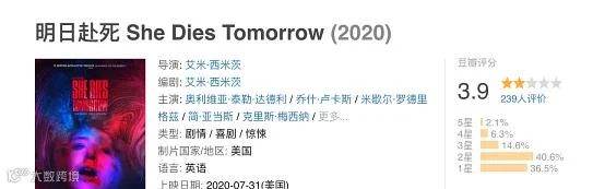 如果译名老老实实按照原名《She Dies Tomorrow》翻译成《她明天就死了》,或许大家就会在脑海中形成一部文艺片的印象了。