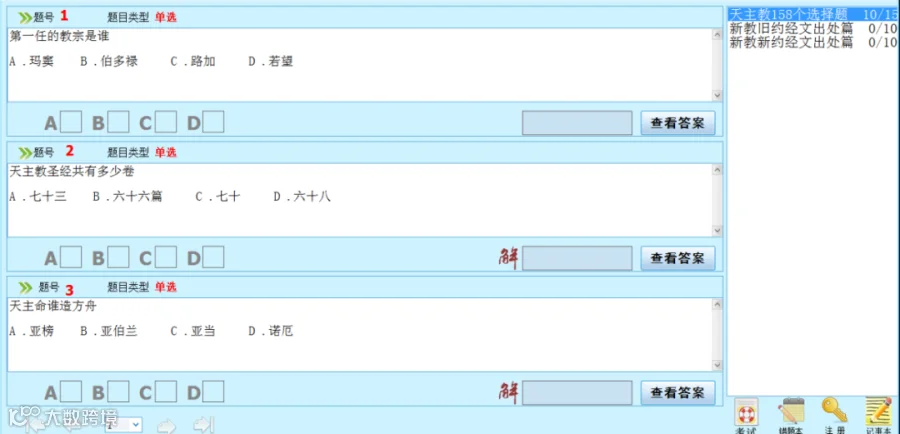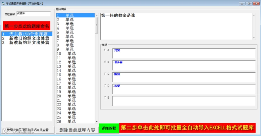 如果想自己添加试题,请按照【试题批量导入模板】里面的格式自己添加保存,然后,运行通用题库批量导入器【管理员用】把试题批量导入模板就OK了
