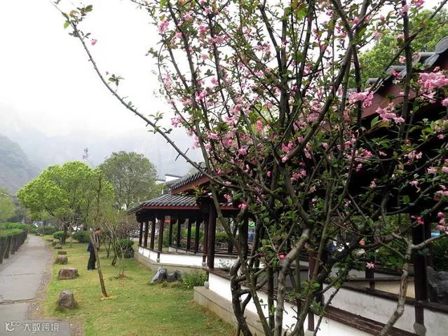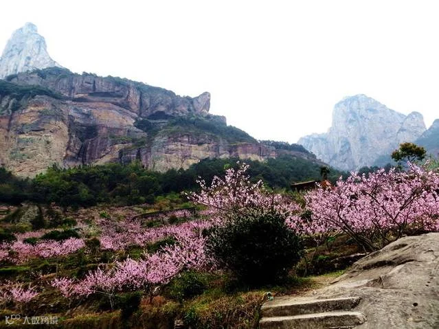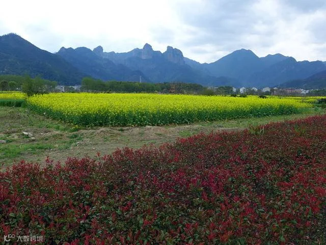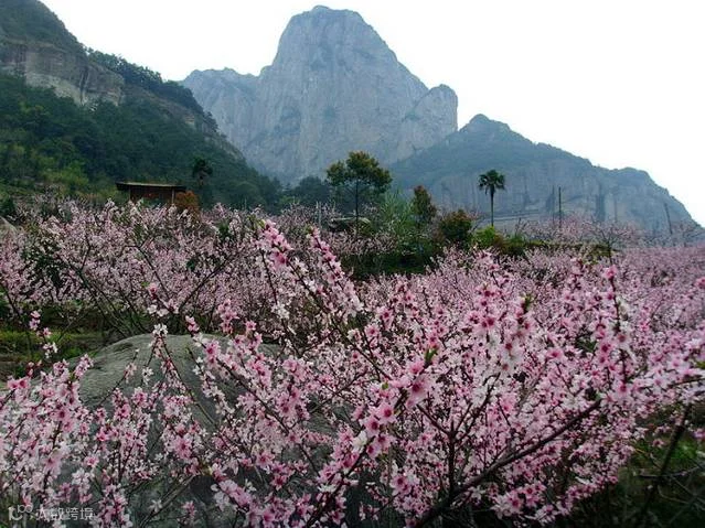 正是:“满树和娇烂漫红,万枝丹彩灼春融。何当结作千年实,将示人间造化工。”原来这里已经是雁荡山下灵岩景区了。你看,奇峰下更见桃花红,和煦的春风吹得草色青、菜花黄,眼前美景让人陶醉其中。几疑来到陶渊明所写“桃花源记”中的世外桃园呢。