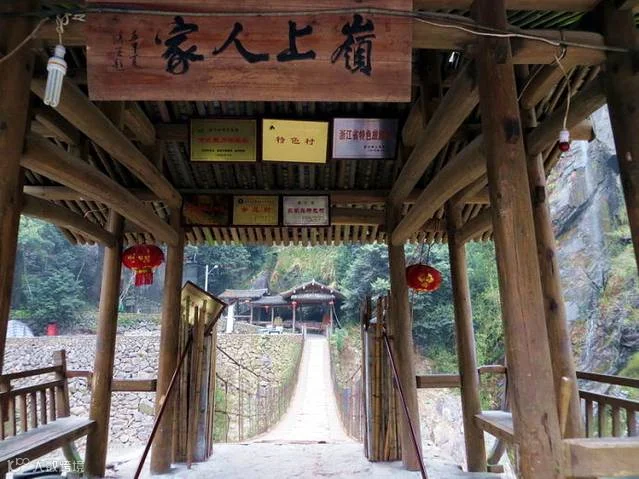 路上给我留下深刻印象的是那个叫岭上人家的村庄。岭上人家位于永嘉县鹤盛乡岭上村内,在公路上就能看到这个村庄。只见村民把住房错落有致的建在半山腰上,掩映在绿树中。清晨,但见炊烟袅袅,一派生机。据悉,早在明朝嘉靖年间,就有人家在此繁衍生息,如今还保留着有400多年历史的田园古村落。村子里几乎所有房子都背山面水,远远看去犹如嵌在崖壁上,很是壮观。