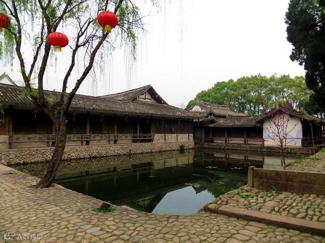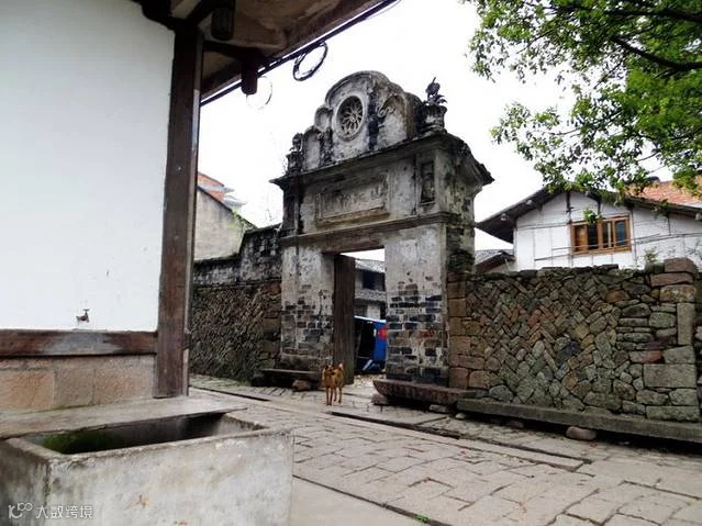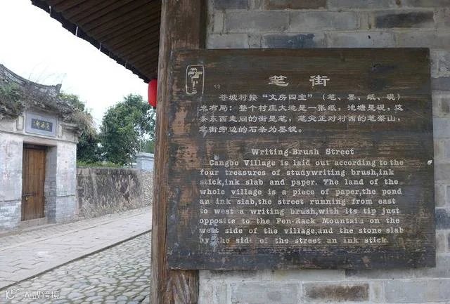 因为不到8点,还没有人收门票。我们来到苍坡的南门。此溪门形态优雅,颇具田园味。 它的头拱,月梁,大头梁做工都极为考究,颇具宋代木构淳和之风。梁中悬一匾,上有“苍坡溪门"四个字,梁下中间辟门,两侧设直棂窗。站在门内向外眺望,远处阡陌交通,绿野平畴,农田池塘,一片田园风光。进村就见一个大池塘,白墙黑瓦倒映水中,给人一种美感。村中保护也不甚完好,只是有一井,水质极佳,且冬暖夏凉,匆匆村中一走,因为还要赶路不能久留。并没感到比其他古镇都好。