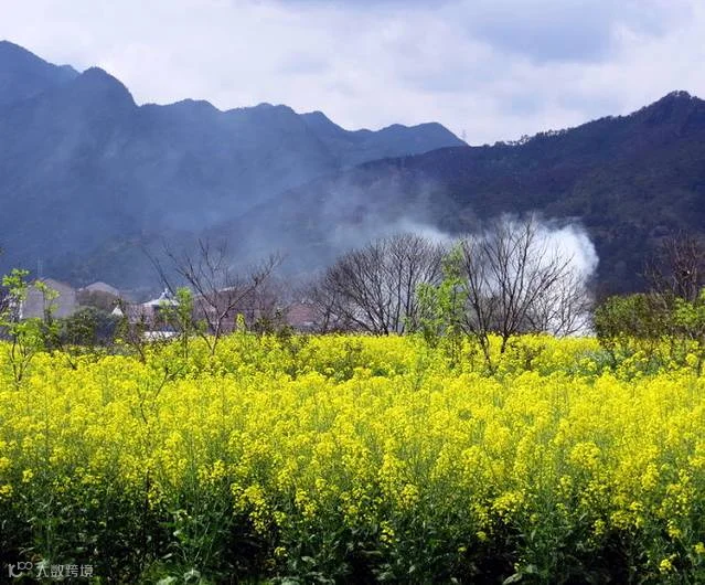 最让人兴奋的莫过于二桥边上盛放的油菜花。当我们看到那一大片黄灿灿的油菜花时我们的心都飞扬了起来。难怪搞摄影的人都喜欢拍它,那是因为它色彩艳丽,黄得干净、绿的透彻。尤其是在远山的衬托下,更显得那么热烈却并不张扬。从不知道油菜花长得有一人高,人在其中难露头脚。三几株盛开的桃花更是用粉红的花朵点缀其中,给人带来美的享受。