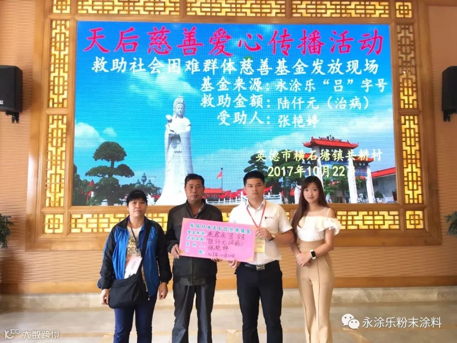 “永涂乐”得知以上情况,从东凤孖水天后宫慈善基金——永涂乐“吕”字号基金中,拨款6000元(大写:陆仟元)资助该女子治病。希望她能早日康复!