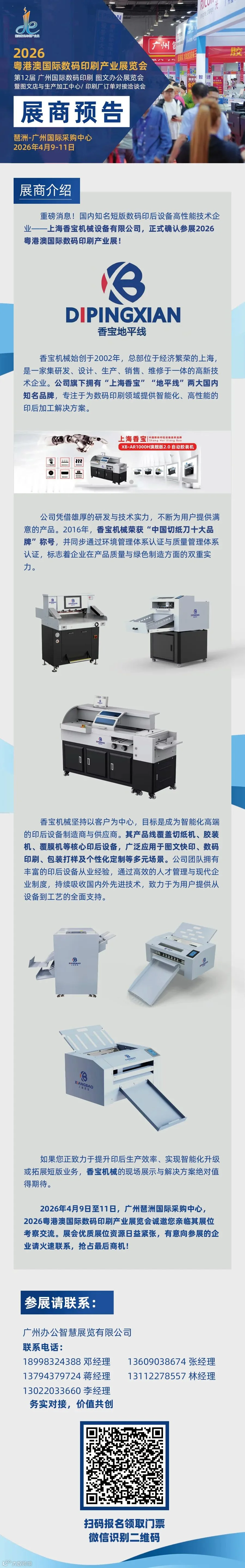【展商播报】国内知名短版数码印后设备高性能技术企业--上海香宝机械设备有限公司,确认参展!