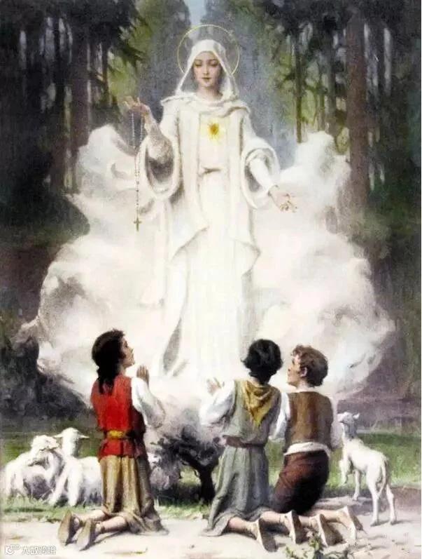 圣母在葡萄牙国法蒂玛(Fatima)地方显现给三个牧羊的孩童:7岁的女孩雅琴达,9岁的男孩方济各,10岁的女孩路济亚 (其中方济各和雅琴达已列入真福品) 。他们没读过书,只懂得一点要理,会念《玫瑰经》。