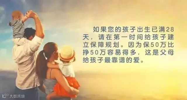 父母对孩子的爱是无私的,爱就是责任,给子女买保险是父母之爱的第一选择,有充足的保障面对未来!