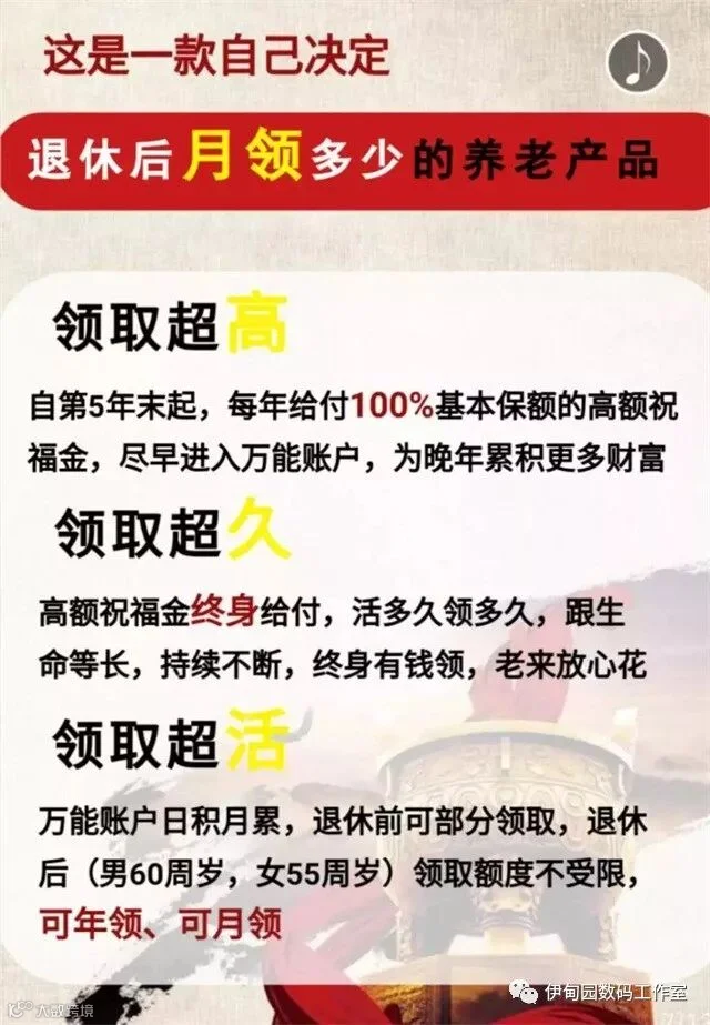 灵活规划:祝福金及红利可选择进入万能账户持续增值。退休后(男性60周岁、女性55周岁),账户领取不受限制,养老金年领、月领随意选。