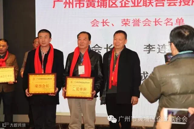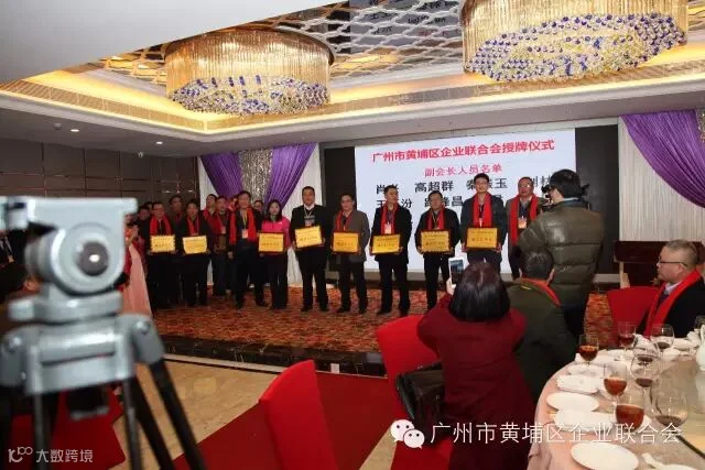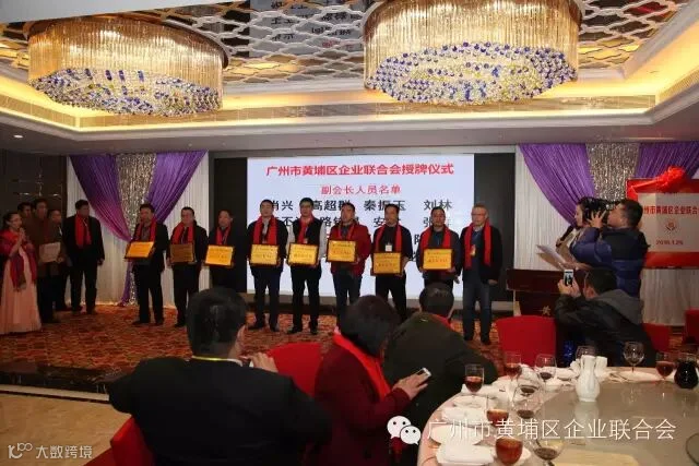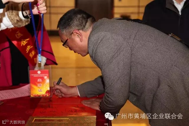 1月26日,广州市黄埔区企业联合会在华苑大酒店举行成立庆典暨投资合作签约仪式。区委常委统战部部长黄金持、副区长陈小华、区政协副主席黄一汉、区人大副主任刘岳生等领导及同盟商会、联合会主要成员以及区属各部门的领导、社会各界人士共计200名人员参加庆典。区民政局代表宣读批准成立广州市黄埔区社会组织联合会批复后,区领导和联合会会长、执行会长、监事长、荣誉会长共同为企业联合会揭幕。联合会李连平会长分别与欧洲联盟林国富先生、安徽商会张继龙会长、PICC保险公司副总经理马东亮签订长期业务合作协议。联合会会长李连平先生在致辞中感谢区领导和各界人士对企业联合会的支持和厚爱,同时向各会员单位发出倡议:一是各会员企业带头遵纪守规,合法经营,做有良心的企业家;二是各企业不断吸引资金、技术和人才,做大做强,做有上进心的企业家;三是相应国家大众创业,万众创新的号召,不断开拓进取,攻坚克难,做有创新心的企业家;四是热心公益和慈善事业,帮扶困难和弱势群体,做有慈爱心的企业家。