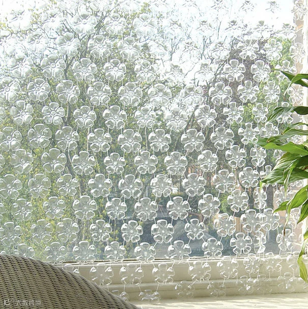 这些透明闪亮、有立体感的漂亮装饰花朵都是用塑料饮料瓶的瓶底制作的。