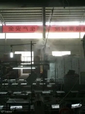 同时喷雾降温在混料车间应用,高速喷射的细雾对捕捉粉尘、抑制粉尘飞扬方面效果也很好。如冠珠陶瓷粉料输送车间应用。
