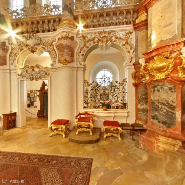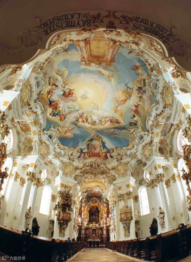 华丽镶金的泥塑花环、举世闻名的教堂圆顶天花板壁画、精雕细琢的错视湿壁画 (Trompe-l’œil-Fresko),都是反映了人类最高创造力的大师级作品,是虔诚信仰的最佳见证。建筑师多米尼克斯·齐默尔曼一直到死都没有离开这座位于巴伐利亚州 (Bayern) 的维斯教堂,他一直居住在教堂旁边由自己亲手修建的房子里,如今被改建为一间客栈。