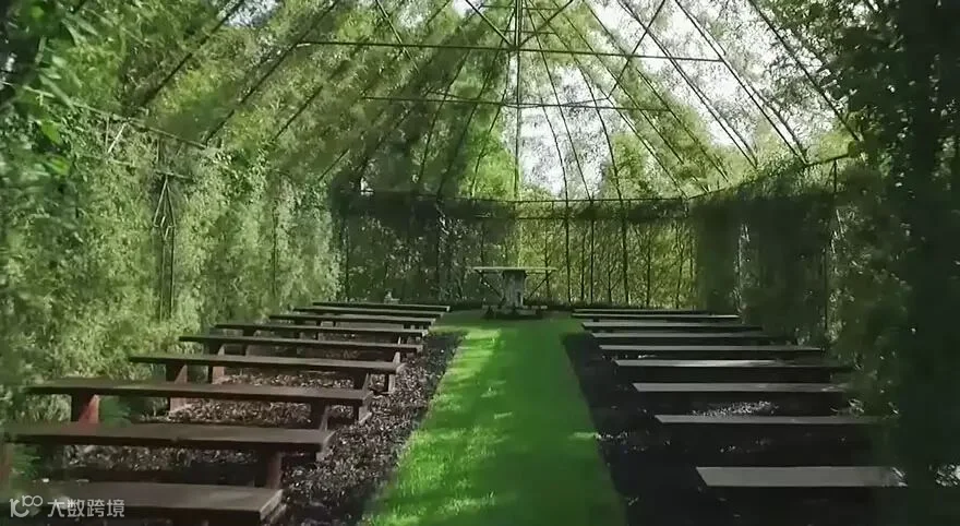 每次婚礼前,Barry都要花五个小时修剪草坪,再花至少三小时把花园打扮得符合婚礼主题。Barry说:“我喜欢游客们享受和欣赏我的大树教堂。”