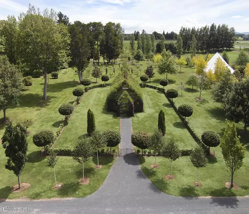 把想法转变成现实也不是那么容易的,“从建筑学的角度,你要保证树木的生长比例正确。”Cox使用柔韧度高、且分叉较少的赤杨做骨架,树梢部分弯曲合拢组成房屋的穹顶;红色的麦卢卡科Copper Sheen树组成墙体。