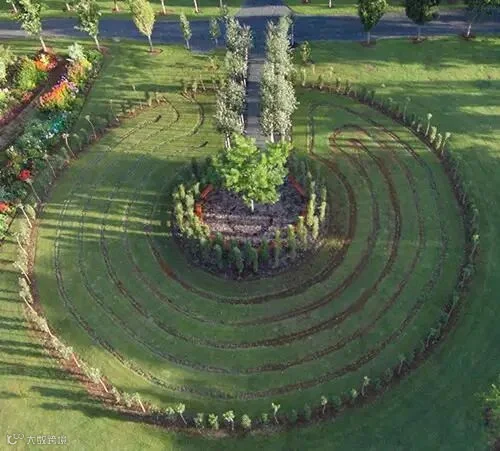 教堂外面还有一个蜿蜒迂回的迷宫走道,Barry当时设计它,是用来冥想的。