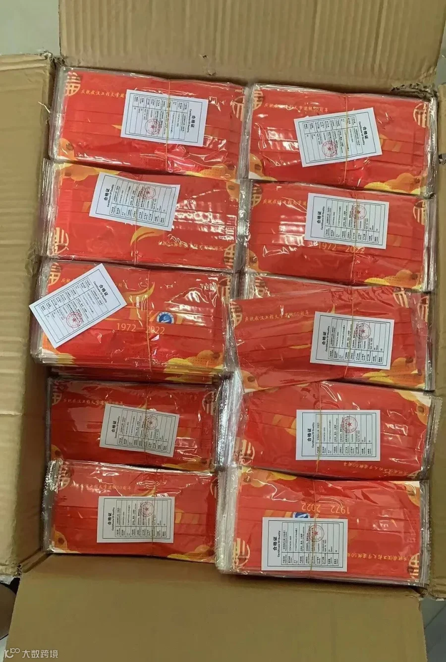 一箱箱口罩堆码整齐有序。