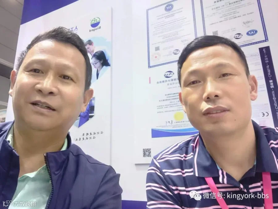 胡红兵来到广州标格达公司展台与师弟王总合影