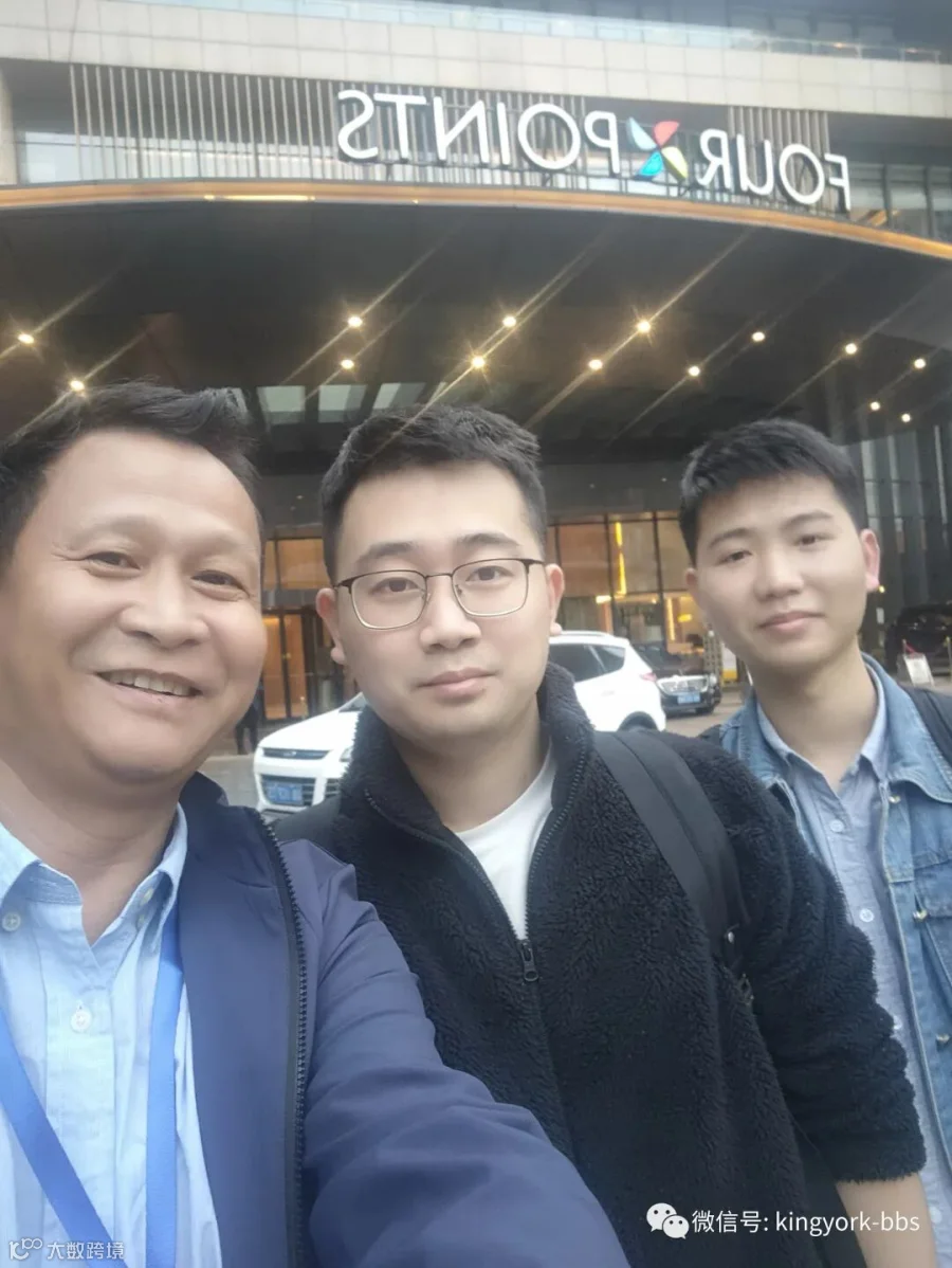 4月27日下午,胡红兵在会议酒店附近与已经毕业的硕士师弟徐浩斌、赵泽阳一起交流。