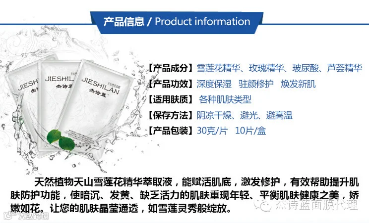 杰诗蓝--天山雪莲面膜,新产品功能介绍